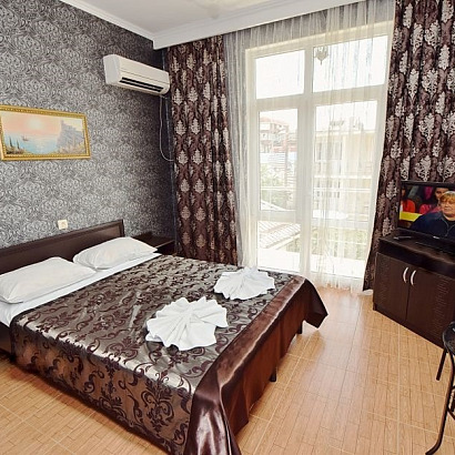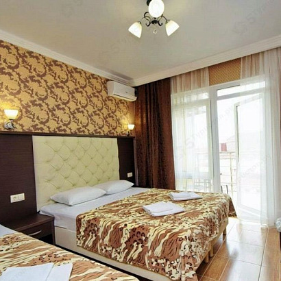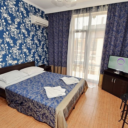 2-х местный номер с удобствами с балконом: двуспальная кровать или две односпальные, шкаф, прикроватные тумбочки, туалетный столик с зеркалом, стулья. Этаж: 1-2-3-4. В номерах на 1 этаже - французский балкон!