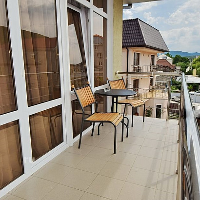 Номера, расположенные на 1 этаже, без балкона. Номера, расположенные на 2-3-4 этаже с балконом (столик, стулья, сушилка для белья).