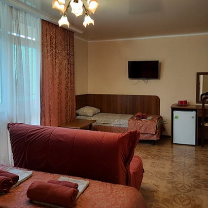 3-х местный номер с балконом, с удобствами (душ, туалет, умывальник), телевизором, кондиционером, холодильником, феном.
