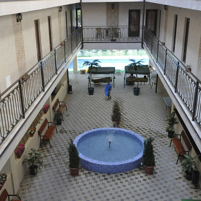 Инфраструктура: бассейн (15*4) с шезлонгами, столовая, автостоянка на 10 мест (200 руб/сутки), Wi-Fi интернет, небольшая кухня для самостоятельного приготовления пищи, утюги и гладильные доски на кажом этаже, мангал, термопот (на каждом этаже), небольшая детская игровая зона, круглосуточное видеонаблюдение по всей территории гостиницы, стирка (200 руб).