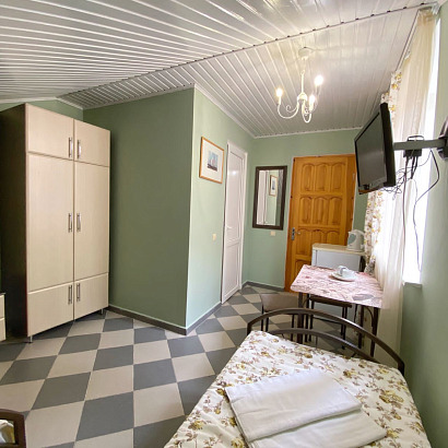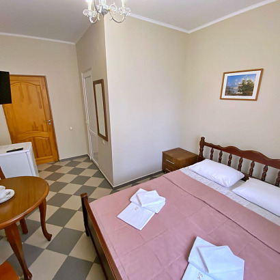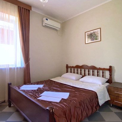 Описание: гостевой дом состоит из двух корпусов. В новом корпусе все номера 2-местные с 2-спальными кроватями. К услугам гостей уютные комфортабельные номера. В номерах - красивая современная мебель. Санузлы оснащены импортной сантехникой. При заезде предоставляются полотенца и предметы гостеприимства. Уборка в номерах и смена постельного белья производится по запросу. Wi Fi на территории и в номерах - бесплатно. Горячая и холодная вода – круглосуточно.