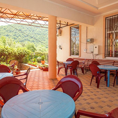Расположение: уютный гостевой дом «Домик у реки» расположен на берегу живописной реки Тешебс, в зеленой зоне поселка Архипо-Осиповка, рядом с аквапарком «GoodZone». Это место прекрасно подойдет и для молодежи, и для отдыха с детьми, и для семейных пар. Вблизи расположены магазины, столовые, кафе, дельфинарий, парк развлечений.
