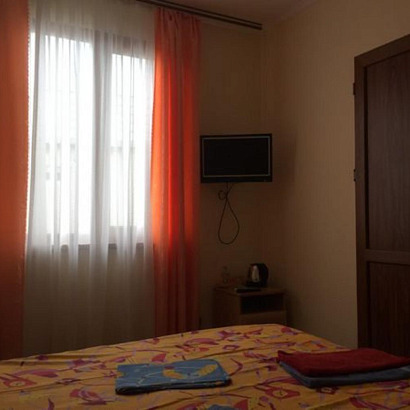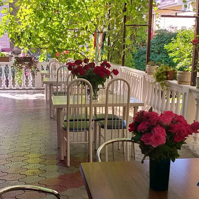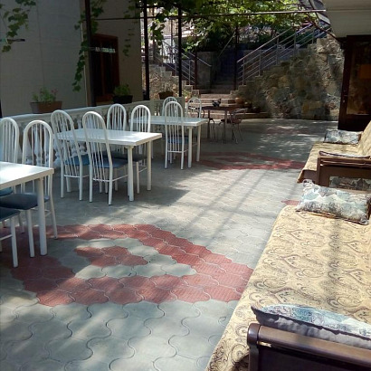 Описание: современная гостиница, состоящая из нескольких корпусов, 4 отдельные, увитые виноградом веранды для отдыха, имеется мангал и закрытая стоянка для вашего автомобиля.