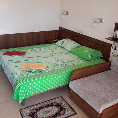 Размещение: 2-х местные номера со всеми удобствами (душ, туалет, умывальник, телевизор, холодильник, сплит-система, электрочайник). В каждом номере раздельные кровати (по желанию сдвигаются), шкаф, журнальный столик, вешалка, зеркало. В каждом номере возможно установить дополнительное место (кресло-кровать). Площадь номеров – 14 кв.м.