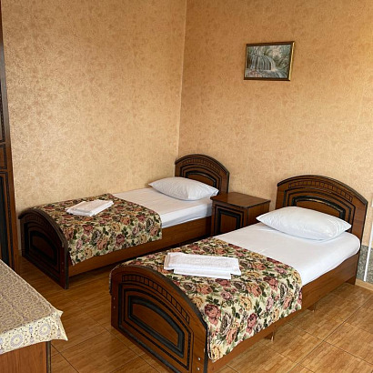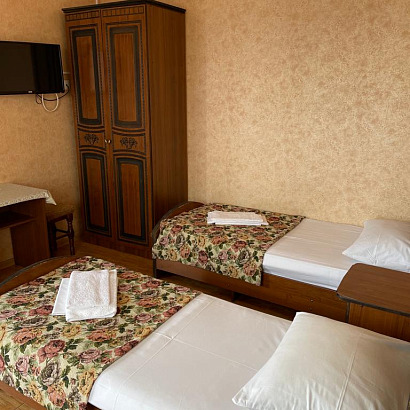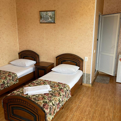 2-местные номера со всеми удобствами (душ, туалет, умывальник, телевизор, холодильник, сплит система). В каждом номере раздельные кровати, шкаф, журнальный столик, вешалка, зеркало. Номера находятся на 3 этаже и имеют общий проходной балкон.