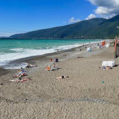 Пляж: галечный пляж в 5 минутах ходьбы (260 м), рядом с пляжем большая бесплатная детская площадка.