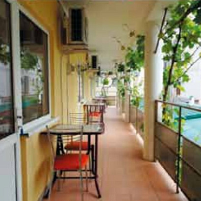 Условия размещения: 2-3-х местные номера с удобствами (душ, туалет, раковина), в каждом номере телевизор, холодильник, кондиционер, кровати раздельные 80×200 либо двуспальная и диван. Комнаты 15-20 кв.м; Номера на 2 и 3 этаже