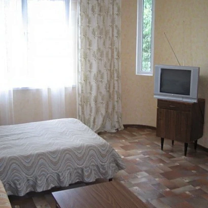 2-местные номера с удобствами. В каждом номере: санузел, мебель (кровати, шкаф, прикроватные тумбочки, столик), кондиционер, телевизор. Холодильники расположены на общей кухне.