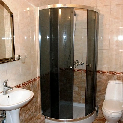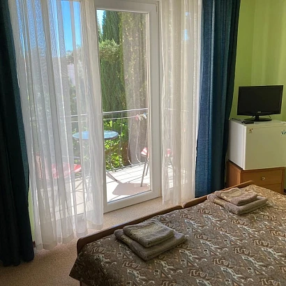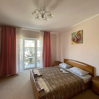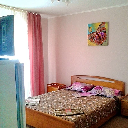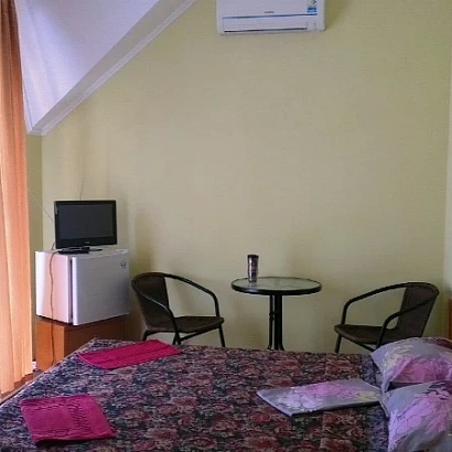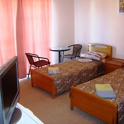 2-3-х местные номера с удобствами. В каждом номере: санузел, мебель (кровати, шкаф, прикроватные тумбочки, столик), кондиционер, телевизор, холодильник, балкон или веранда.