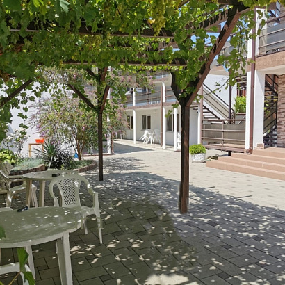 К услугам отдыхающих: просторный двор с местами для отдыха, возле каждого номера пластиковые столы и стулья, бесплатный Wi-Fi на территории, утюг, гладильная доска, стиральная машина за доп. плату.