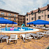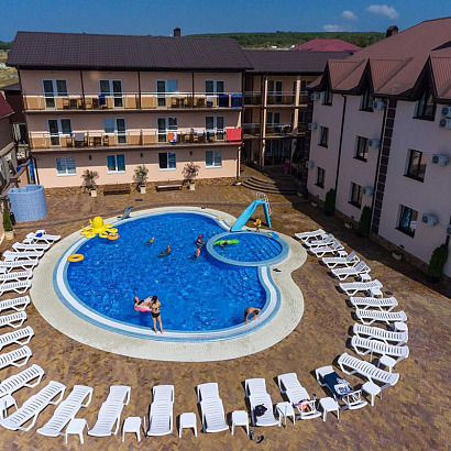 Инфраструктура: Wi-Fi, детская анимация 1 раз в неделю, бассейн с детской чашей, подогревом и детской водной горкой, детская площадка, зона барбекю, столовая в корпусе "Клен", парковка, гладильная доска, утюг, стирка (платно). Кухни для самостоятельного приготовления пищи нет.