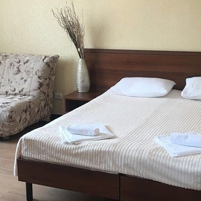 4-х местный номер СЕМЕЙНЫЙ с удобствами: двуспальная или раздельные кровати + 2-спальный диван-кровать.