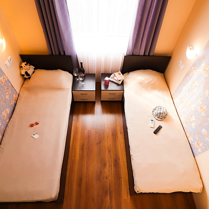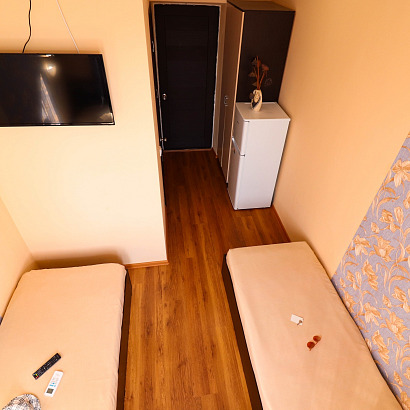 2-х местный номер с удобствами, ТВ, холодильником, кондиционером. Номера оснащены: односпальные или двуспальная кровати, шкаф, стулья, прикроватные тумбочки. В некоторых номерах есть балкон (по запросу при бронировании).