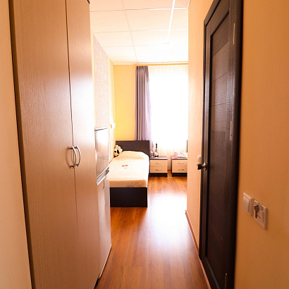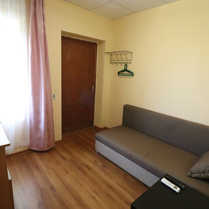 1-но местный номер с удобствами, ТВ, холодильником, кондиционером. Номера оснащены: диван, стол, вешалка.