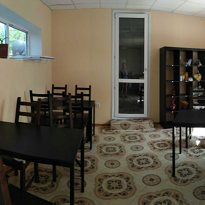 Размещение: Трехэтажное и двухэтажное здания, уютная зеленая территория с беседками.