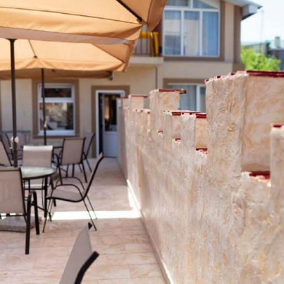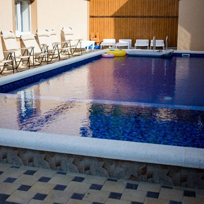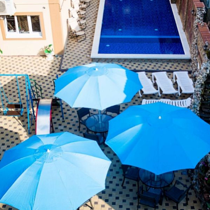 К услугам отдыхающих: уютный зеленый двор с местами для отдыха, детская площадка, бесплатный Wi-Fi на территории, подогреваемый бассейн (4х12 метров, глубиной 1,5 метра, в детской зоне 1 метр), гладильная доска, утюг. Стиральная машина за доп. плату ~ 150 руб.