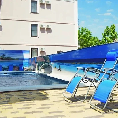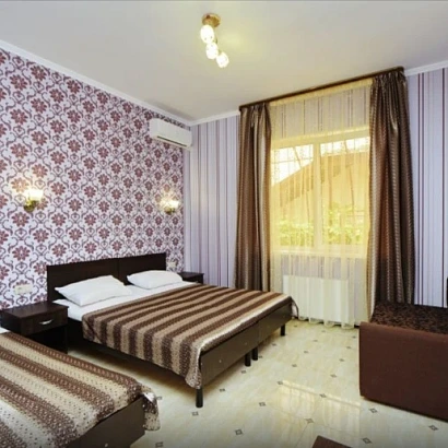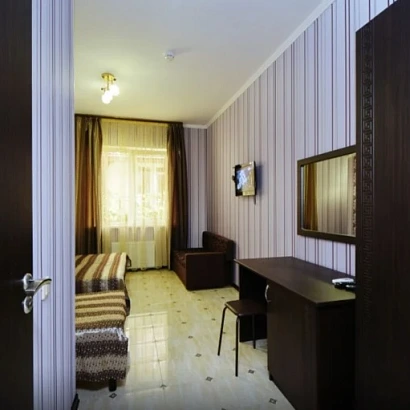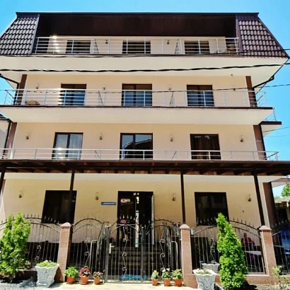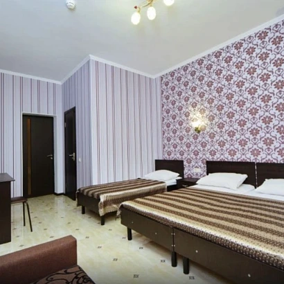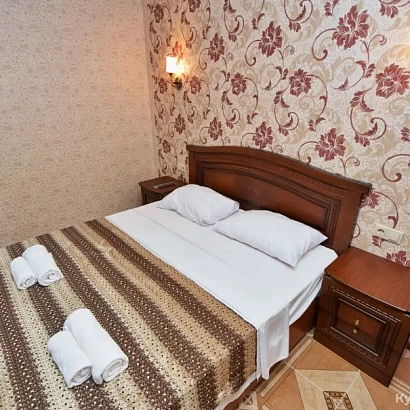 На территории: ОТКРЫТЫЙ БАССЕЙН, бесплатный Wi-Fi, парковка, мангал и принадлежности для барбекю, благоустроенный внутренний двор, оборудованный столами и стульями. На каждом этаже - гладильная доска и утюг. Бесперебойно горячая и холодная вода, есть накопитель. В здании отеля расположена столовая с комплексным питанием, бар.