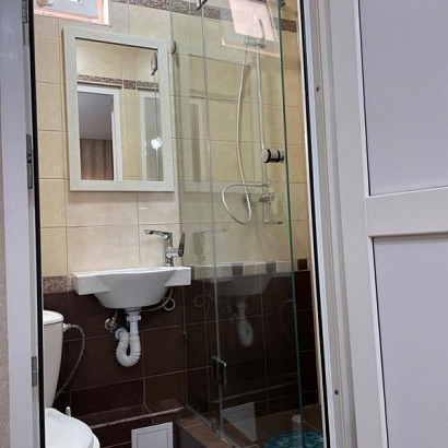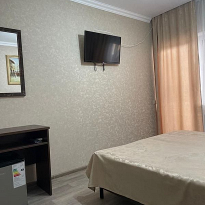 Номера: 2-х местные номера + доп место (еврораскладушка дети до 14 лет)со всеми удобствами ( душ, туалет, умывальник, телевизор, холодильник, кондиционер). В каждом номере кровати трансформеры, шкаф, столик, вешалка, зеркало. Номера находятся на 1 (1-й, 2-й, 3-й, 4-й номера) этаже и 2 (7-й и 8-й номера) этаже . Гладильная доска + утюг. Стиральная машина (платно).