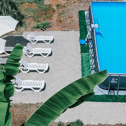 К услугам отдыхающих: закрытый двор с местами для отдыха, каркасный бассейн (10х5 метров, глубина 1,3 метра), детская площадка, бесплатный Wi-Fi на территории, мангал (пользование может быть ограниченно в связи с действием Правил пожарной безопасности), утюг и гладильная доска на этаже, стиральная машина за доп. плату.