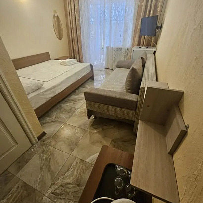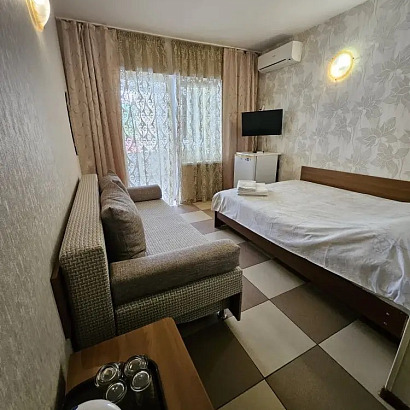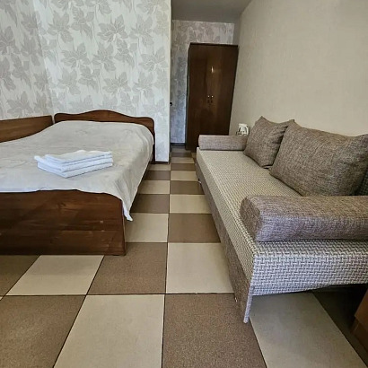 Размещение: 2-х местные номера кровати двуспальные (доп. место диван ). Просторные номера оборудованы всем необходим. Все номера с сан узлом, тв , холодильником, кондиционерами, чайником, спутниковым телевидением и проходным балконом! Номера расположены на 1-ом и 3-ем этажах. Утюг и гладильная доска на каждом этаже, стиральная машинка за доп. плату.