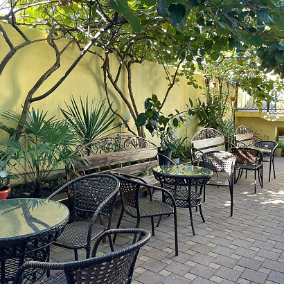 Размещение: современное четырехэтажное здание с уютной территорией, которая озеленена экзотическими растениями (киви, бананы, лимоны, фейхоа).