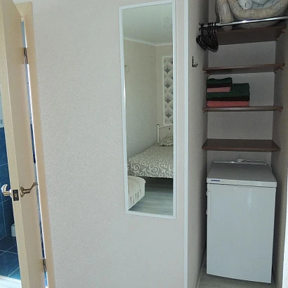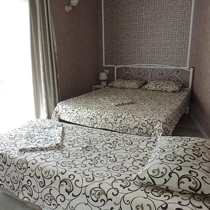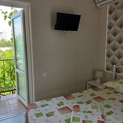 2-3-местные номера с кондиционерами, расположенные на 3 этаже с просторным балконом на 2 номера. В каждом номере: одна двуспальная кровать (в 2-местном) или двуспальная кровать + раскладное кресло (в 3-местном), необходимый набор мебели, душ, туалет, умывальник, бесплатный Wi-Fi, кондиционер, холодильник, телевизор, москитная сетка. В общем пользовании: стирка (за дополнительную плату), гладильные принадлежности, сушилка для белья.