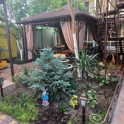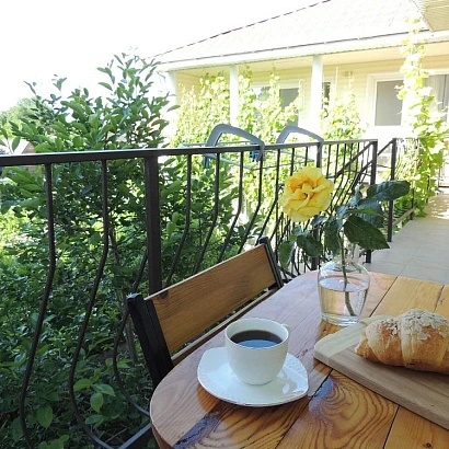 Для Вашего отдыха два трехэтажных здания с уютными 2-3-местныМИ номерами с просторными общими балконами, удобная оборудованная общая кухня на свежем воздухе с чайником, микроволновой и газовой печами. Номера оборудованы всем необходимым для комфортного проживания. В каждом номере: телевизор, кондиционер, интернет Wi-Fi, санузел с душем – горячая вода постоянно. Тенистый зеленый двор спрячет от летней жары и позволит насладиться приятной компанией во дворике с барбекю, вкусным вином и игрой в настольный теннис.