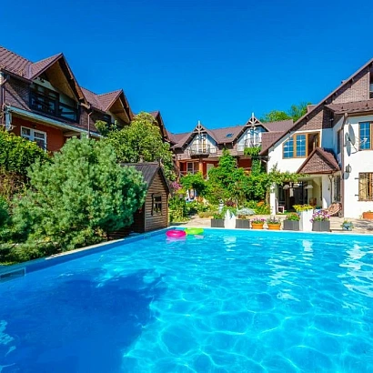 Гостевой дом «Димерчи» расположен в центре курортного посёлка Лермонтово по улице Ленина в самом уютном и тихом месте. Гостевого дома "Демерчи" благоустроенная, просторная, озеленённая и удачно вписывается в окружающий ландшафт. Имеется два бассейна с подогревом и современной инфраструктурой, периметр бассейна оснащён шезлонгами, столиками, зонтами. Для желающих приготовить шашлык предоставляется мангал, тандыр и столы для общего пользования. Имеется кухня для самостоятельного приготовления пищи. Для детей — детская площадка. Для активных гостей — теннисный стол. Трёхэтажное современное здание располагает номерами, оснащёнными всем необходимым для комфортного пребывания гостей. Дом расположен в 200 метрах от аквапарка, магазинов, продуктовых ларьков и кафе. Расстояние до моря — 8-10 минут ходьбы.