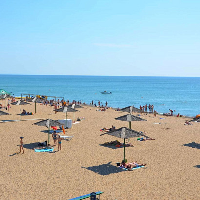 Этот самый популярный пляж города Саки. Тут есть всё необходимое для пляжного отдыха.