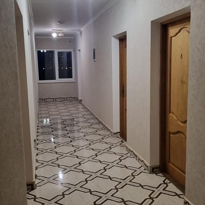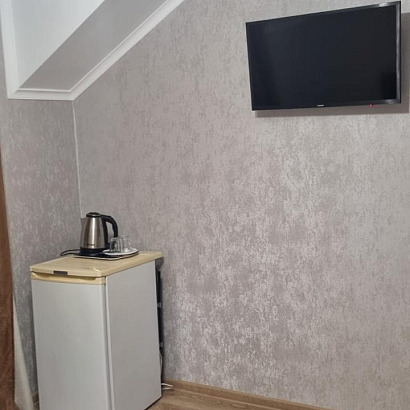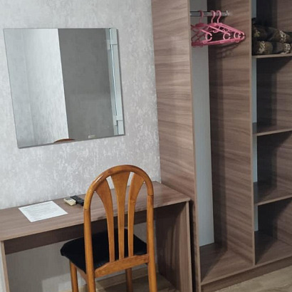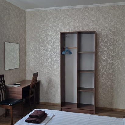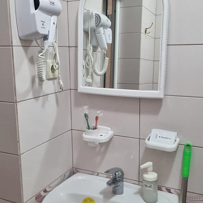 Номера: 2-х местные номера кровати двуспальные с удобствами (душ, туалет, умывальник), двуспальная кровать, в номерах телевизор, холодильник, кондиционер. В номере есть фен и электрочайник. Номера находятся на 4 этаже гостиницы. Имеется общий балкон.