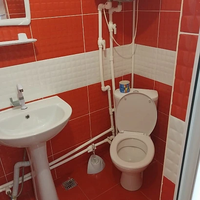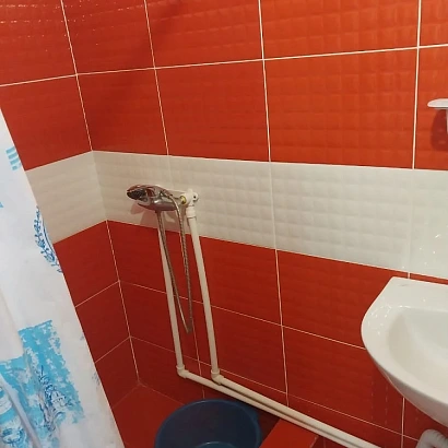 В каждом номере: набор мебели по стандарту; две раздельные или совместная кровать, телевизор, холодильник, кондиционер, санузел. Общая кухня на 1 этаже.