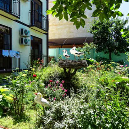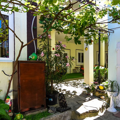 К услугам отдыхающих: к сезону "лето -2025" построили бассейн ( 3х7, глубина 1,60) , закрытый зеленый двор с прекрасным садом, большая открытая терраса со столами и стульями, бесплатный Wi-Fi на территории, мангал (пользование может быть ограниченно в связи с действием Правил пожарной безопасности), парковка для авто, гладильная доска и утюг.
