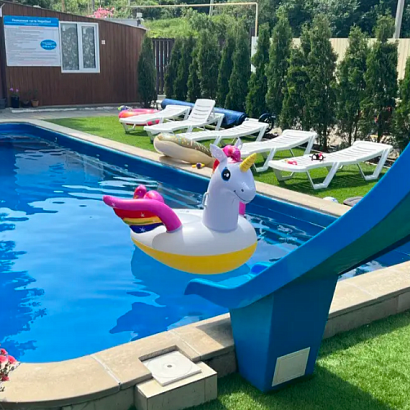 К услугам отдыхающих: уютная территория, бесплатный Wi-Fi на территории, бассейн (10 х 4 метров) с шезлонгами, детская площадка (горка), баня (2000 руб\час) парковка, стиральная машина (за доп.плату), гладильные доска и утюг, мангал (пользование может быть ограниченно в связи с действием Правил пожарной безопасности).