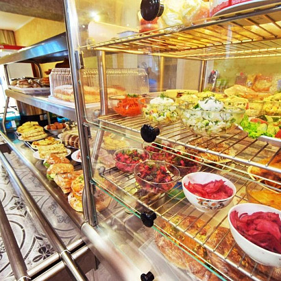 Питание: кухни нет. Можно пользоваться кухней гостевого дома «Наталья», которая оборудована всем необходимым для приготовления пищи. Гостевые дома находятся на одной общей территории. Есть столовая, где можно заказать питание.