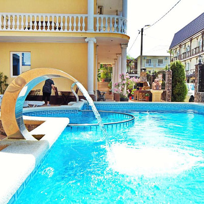 К услугам отдыхающих: красивый двор с местами для отдыха, бесплатный Wi-Fi на территории, бассейн с подогревом (4,5х8 метров), лежаки, утюг, гладильная доска, стиральная машина за доп. плату, мангал (пользование может быть ограниченно в связи с действием Правил пожарной безопасности), парковка.