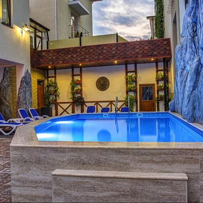К услугам отдыхающих: закрытая территория, бесплатный Wi-Fi, бассейн с джакузи, лежаки.