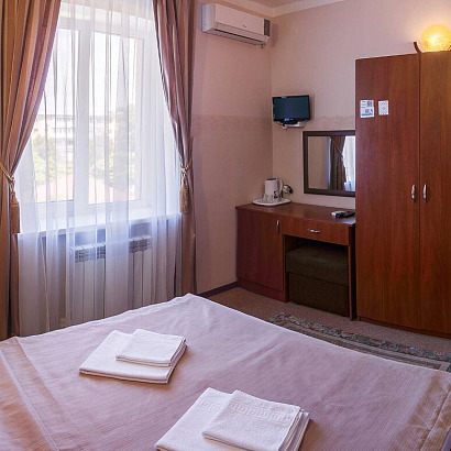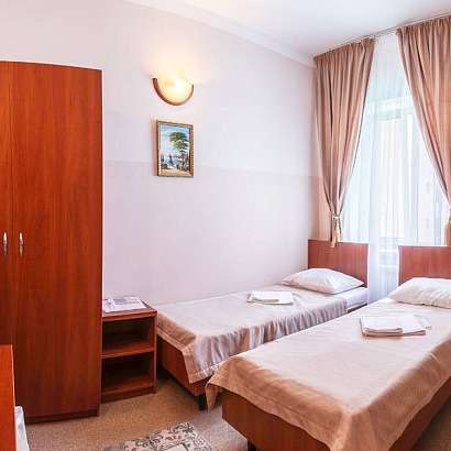 - 2х местные номера. Стандарт. Удобства в номере, ТВ, кондиционер, холодильник, 2спальные и раздельные кровати.