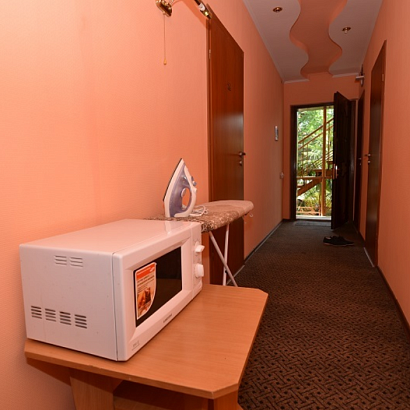 К услугам отдыхающих: закрытая территория с местами для отдыха, бесплатный Wi-Fi на территории, утюг, гладильная доска, стиральная машина за доп. плату (~300 руб./загрузка)