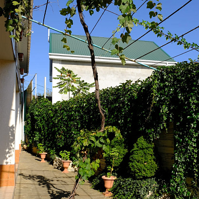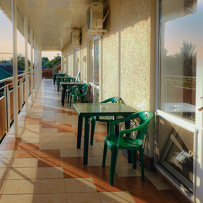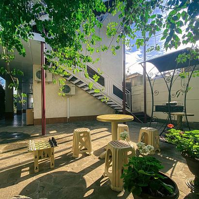 Описание: 3х-этажное здание с уютным двориком. Территория представлена уютным двором с виноградными беседками, где можно душевно провести вечер в кругу друзей. Wi-Fi интернет.