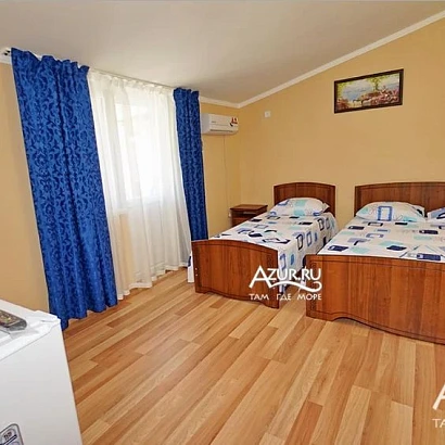 2-3-х местные номера, в каждом из которых: двуспальная и односпальная кровати, тумбочки, шкаф для одежды, стол, телевизор, сплит-система, холодильник. В каждом номере оборудован санузел с душем.