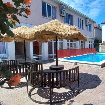 К услугам отдыхающих: закрытый благоустроенный двор, бассейн (9х4 метра, глубина от 1,5 до 1,7 метров), бесплатный Wi-Fi на территории, детская площадка и оборудованные места для отдыха, утюг и гладильная доска, за доп. плату пользование стиральной машиной.