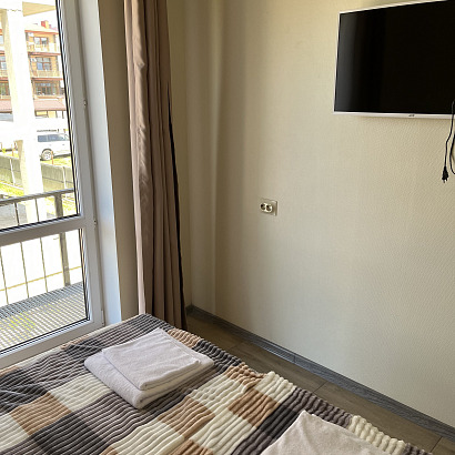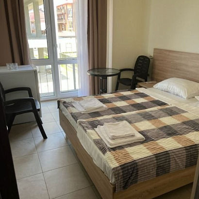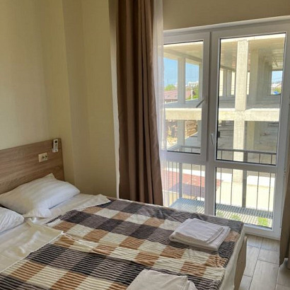 Размещение: 2-х местные номера (кровати двуспальные)со всеми удобствами и балконом; 3-х-4-х местные номера двухкомнатные с балконом. В номерах есть кондиционер, холодильник, телевизор, душевая комната.