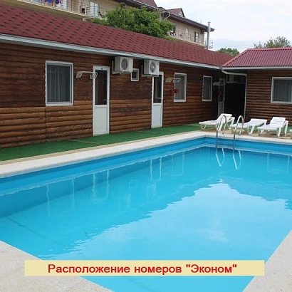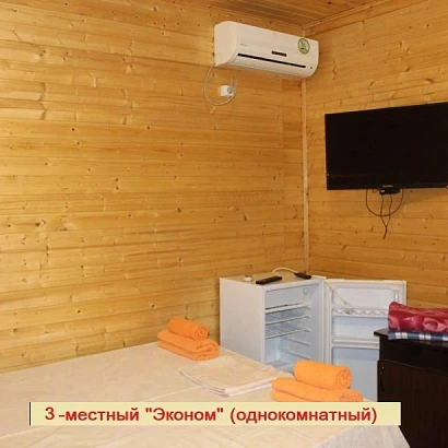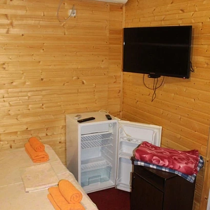 Удобства в номере: 2-3-4-местные однокомнатные номера в корпусе №9 (1 этаж у бассейна), внутренняя отделка под дерево. Однокомнатные номера, в каждом из которых: Спальные места согласно вместимости номера (смотри фото) с прикроватными тумбами, телевизор, холодильник, сплит-система, консоль прихожая, а также душевая комната (душ, унитаз, раковина).