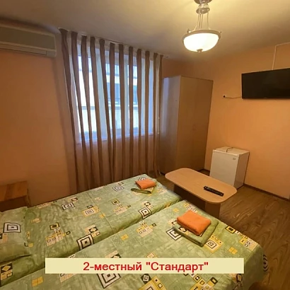 2-местные номера в корпусе на 2-м этаже БЕЗ БАЛКОНА. Оснащение номера: раздельные кровати с прикроватными тумбами, телевизор, холодильник, сплит-система, а также душевая комната (душ, унитаз, раковина).