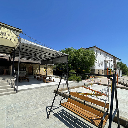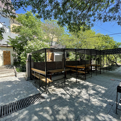 Описание: 3-х-этажное здание с уютным двориком, оборудованная зона барбекю и общей кухней, детская площадка, беседка. Гладильная доска с утюгом, Гости могут воспользоваться услугами прачечной (платно), Wi-Fi интернет