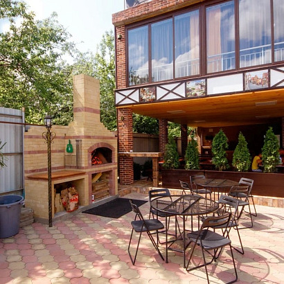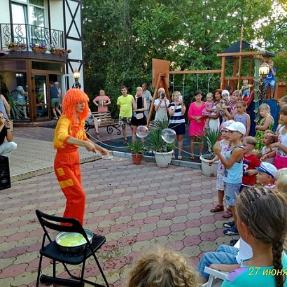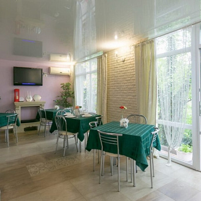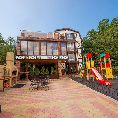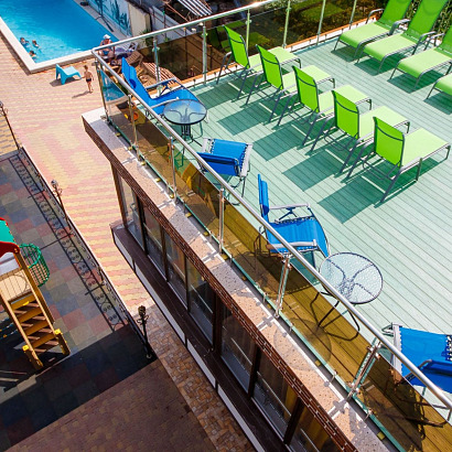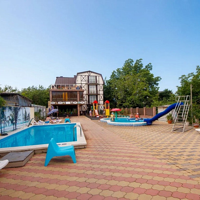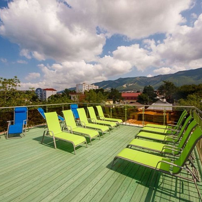 Инфраструктура: открытый подогреваемый взрослый бассейн, открытый подогреваемый детский бассейн с водной горкой и грибком (глубина 40-90 см), джакузи на открытом воздухе, хорошая детская площадка с травмозащитным покрытием, детская и взрослая анимации, пенная вечеринка, тренажерный зал (бесплатно), открытая терасса с шезлонгами и столиками на 3-ом этаже, баня-сауна (1000 руб/час), кинозал (в 17.00 мультики, в 20.00 фильм), своя столовая с домашней кухней (работает до 18 сентября), небольшая кухня для самостоятельного приготовления легкой пищи, Wi–Fi, мангал, стирка (платно), прокат детских колясок (200 руб/день), детские кроватки (по запросу, 200 руб/сутки), гладильные доски и утюги на каждом этаже, полотенца для бассейна, багажная комната, видеонаблюдение по всей территории.