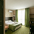 2-х местный номер с удобствами Комфорт (18 кв.м.): двуспальная или односпальная кровати и раскладной диванчик (200*70), шкаф, тумбочки, туалетный столик с зеркалом, кондиционер, телевизор, холодильник, санузел, душ, фен, французский балкон, карточные замки и система допуска, на полу ковролин. Номера расположены на 1-4 этажах.