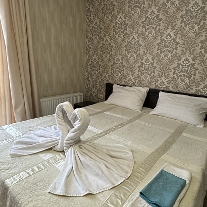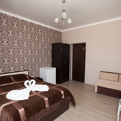 4-х местные 2-х комнатные номера с удобствами, ТВ, холодильником, кондиционером, балконом. Одна комната проходная. Номер оборудован 2-х спальной кроватью и раскладным диваном.