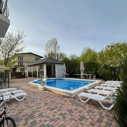 Инфраструктура: Wi-Fi, бассейн с подогревом, утюг и гладильная доска на каждом этаже, кухня для самостоятельного приготовления пищи, благоустроенный двор со столиками, стирка (платно). Детской площадки нет.