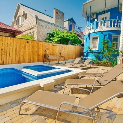 Инфраструктура: бассейн с подогревом и лежаками, оборудованная кухня, беседка, мангал, качели, гладильная доска.